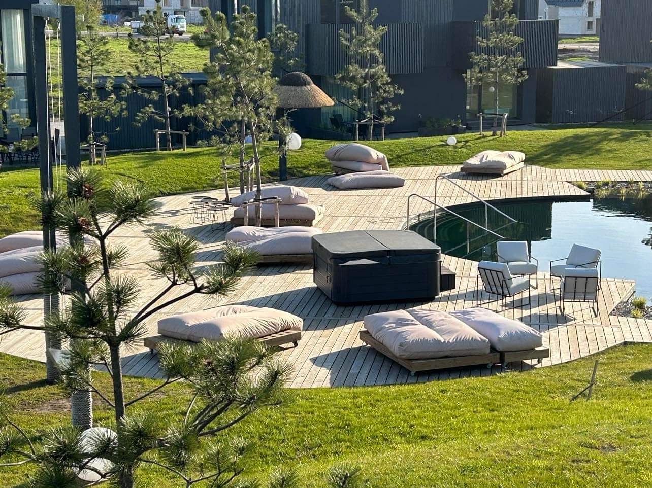 Poilsio kompleksas su SPA zonomis – svečiams siūlomas natūralus eco baseinas, jacuzzi, pirtis, poilsio bei BBQ erdvės, sukurtos ramiam ir kokybiškam poilsiui.